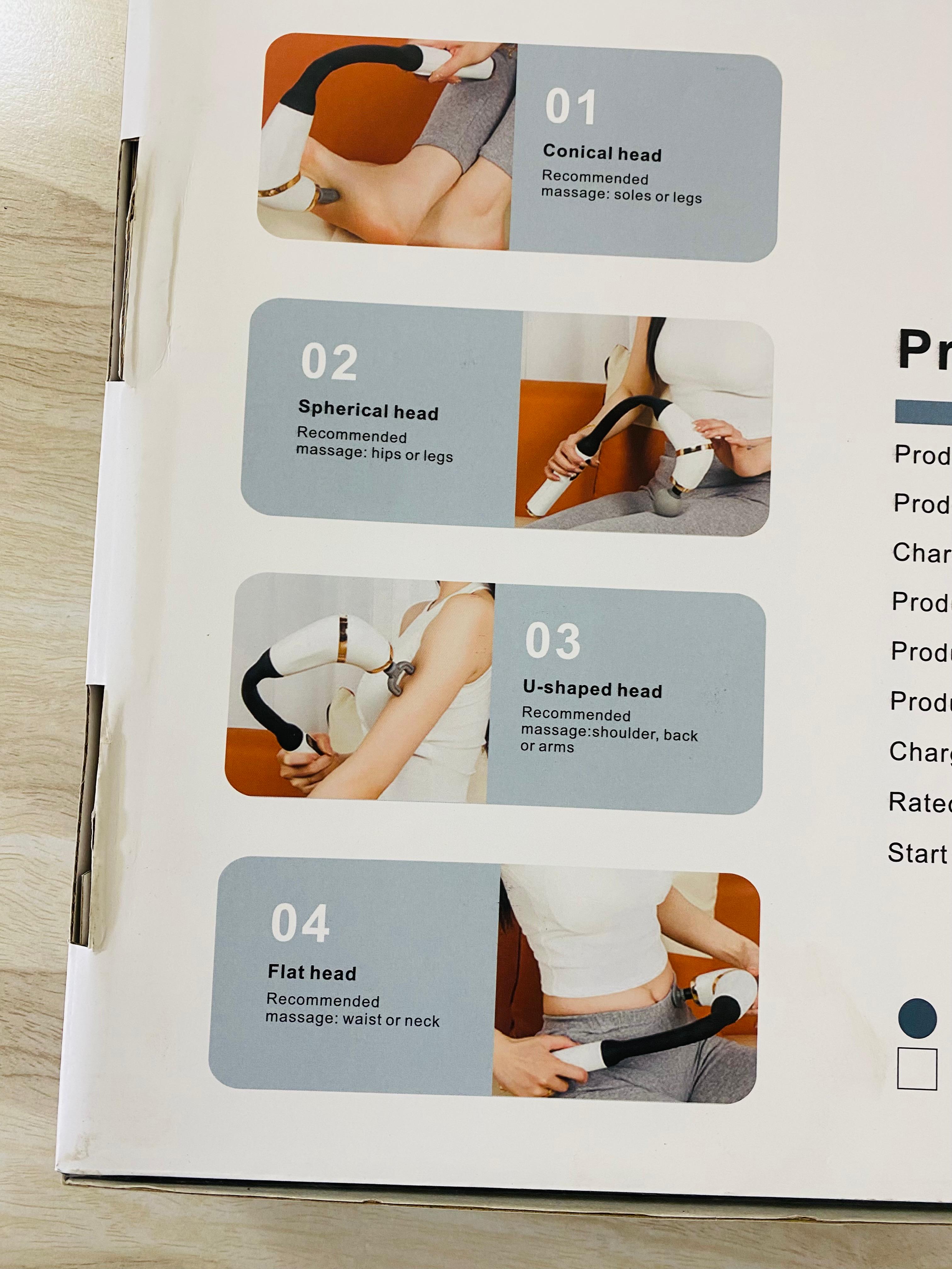 4 Massage Heads & 5 Modes--Choose the mode that best suits your need,and change up the massagers head to more precisely target different body parts.
