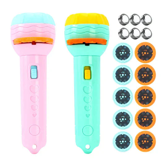 Easy to use. The slide rail can be replaced by simply sliding the plastic cover. Then insert the selected disc and rotate or adjust the disc to observe the projected image. Light and convenient. Can be used as a flashlight to make your child feel safe at night
